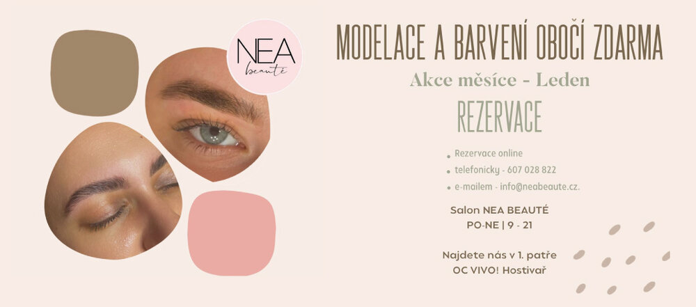Po celý leden v NEA Beauté nabízí MODELACI A BARVENÍ OBOČÍ ZDARMA společně s profesionální kosmetickou péčí Babor 60, 90 nebo 120 min.