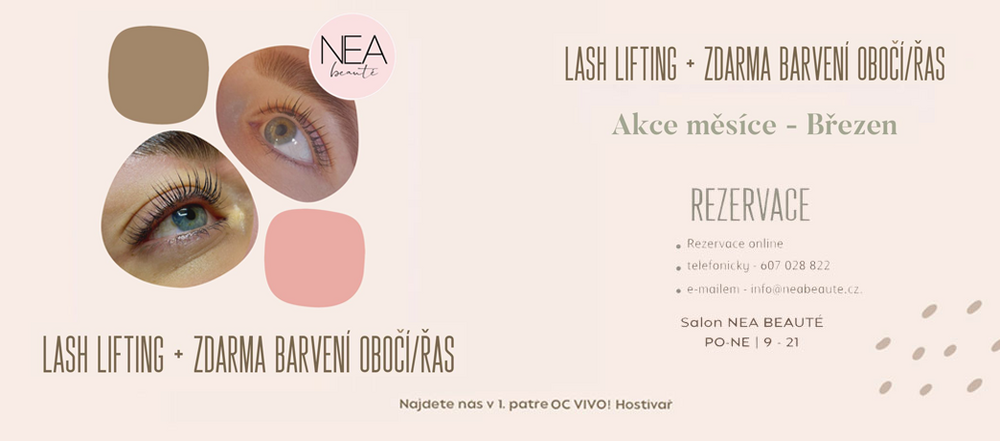 Po celý březen pro Vás v salonu NEA Beauté přinášíme exkluzivní nabídku 💫 LASH LIFTING + ZDARMA barvení obočí nebo řas 👌