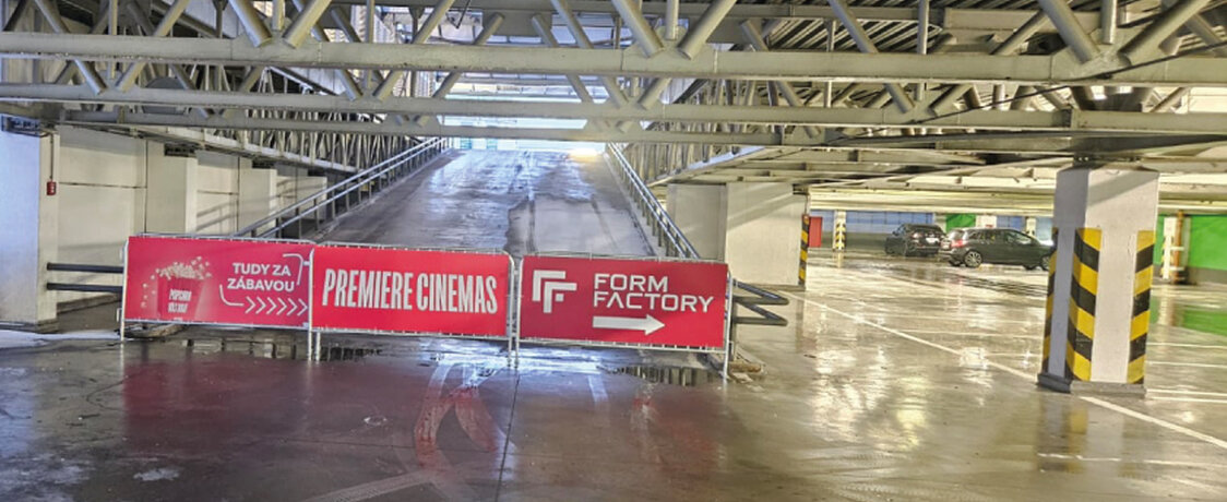 Pro vstup do Premiere Cinemas a Form Factory využijte parkování ve 2. patře garážového domu (zelené patro) s navigací k těmto provozovnám.
